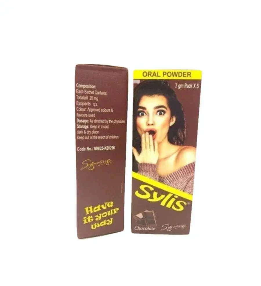 Sylis Oral Powder has a chocolate flavor powder for treating Erectile dysfunction. Sylis Oral Powder works like an PDE-5 (PDE-5) inhibitor. It boosts blood flow through relaxing blood vessel muscles. This also relaxes the muscles of the prostate gland and bladder, and provides some relief ED. The body is stimulated for sexual activity and improves your performance that lasts for an extended period of time.